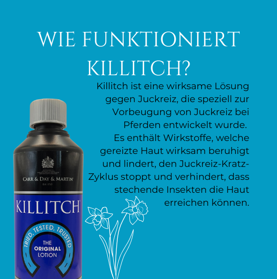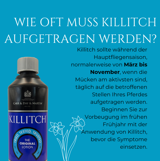 Bei Pferden, die bekanntermaßen an Juckreiz leiden, wird empfohlen, Killitch im zeitigen Frühjahr anzuwenden, bevor die Symptome auftreten.