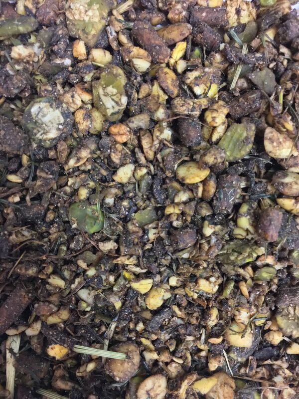 Sojabohnenflocken, Erbsenflocken, Zuckerrohrmelasse, kohlensaurer Algenkalk, Sojabohnenextraktionsschrot, Sojaöl, Maisflocken, Weizennachmehl, Zuckerrübenschnitzel, Gras , hochtemperaturgetrocknet, Minze, Sonnenblumenextraktionsschrot