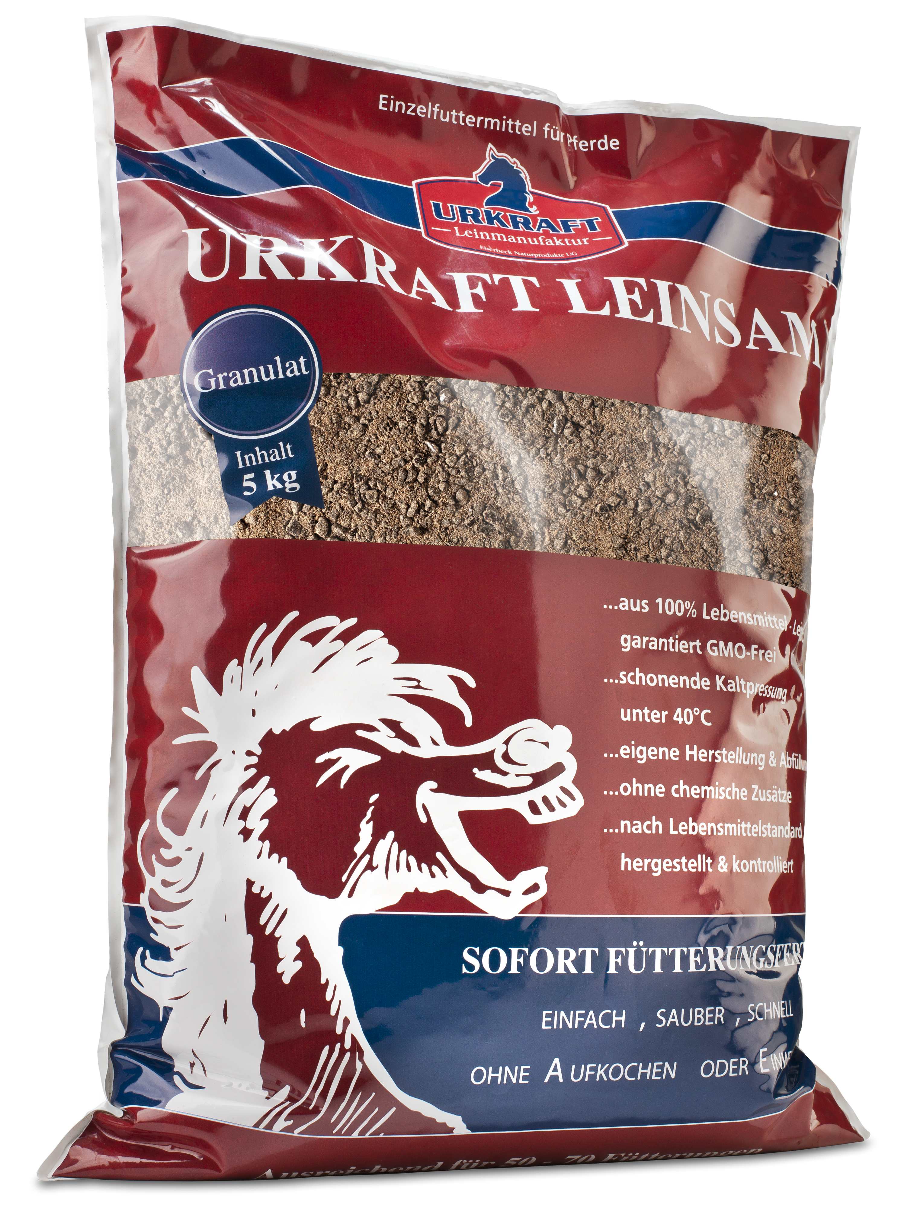 Das Qualitätsprodukt URKRAFT - LEINSAM wurde speziell für Pferde entwickelt. Die wertvollen Schleimstoffe sind bei der Futteraufnahme sofort verfügbar. Dieses wird über das besondere Herstellungsverfahren und der Verwendung einer ausgesuchten Speiseleinsaat möglich. Die natürliche Wirkung der Schleimstoffe dient der Pflege der Magen-Darm-Schleimhaut, als wertvolle Unterstützung für den empfindlichen Verdauungsablauf, sowie zur optimalen Futterverwertung. Haarglanz / Beschaffenheit, optisches Aussehen und Lebensfreude ergeben sich bei einer täglichen Fütterung von selbst.