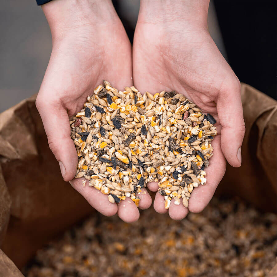 Gerste gequetscht, Mais gebrochen, Weizenflocken (therm. aufgeschlossen) Salvana Pferdemineral, Grünmehl, Sonnenblumenkerne, Leinöl, Karottenpellets, Bierhefe
